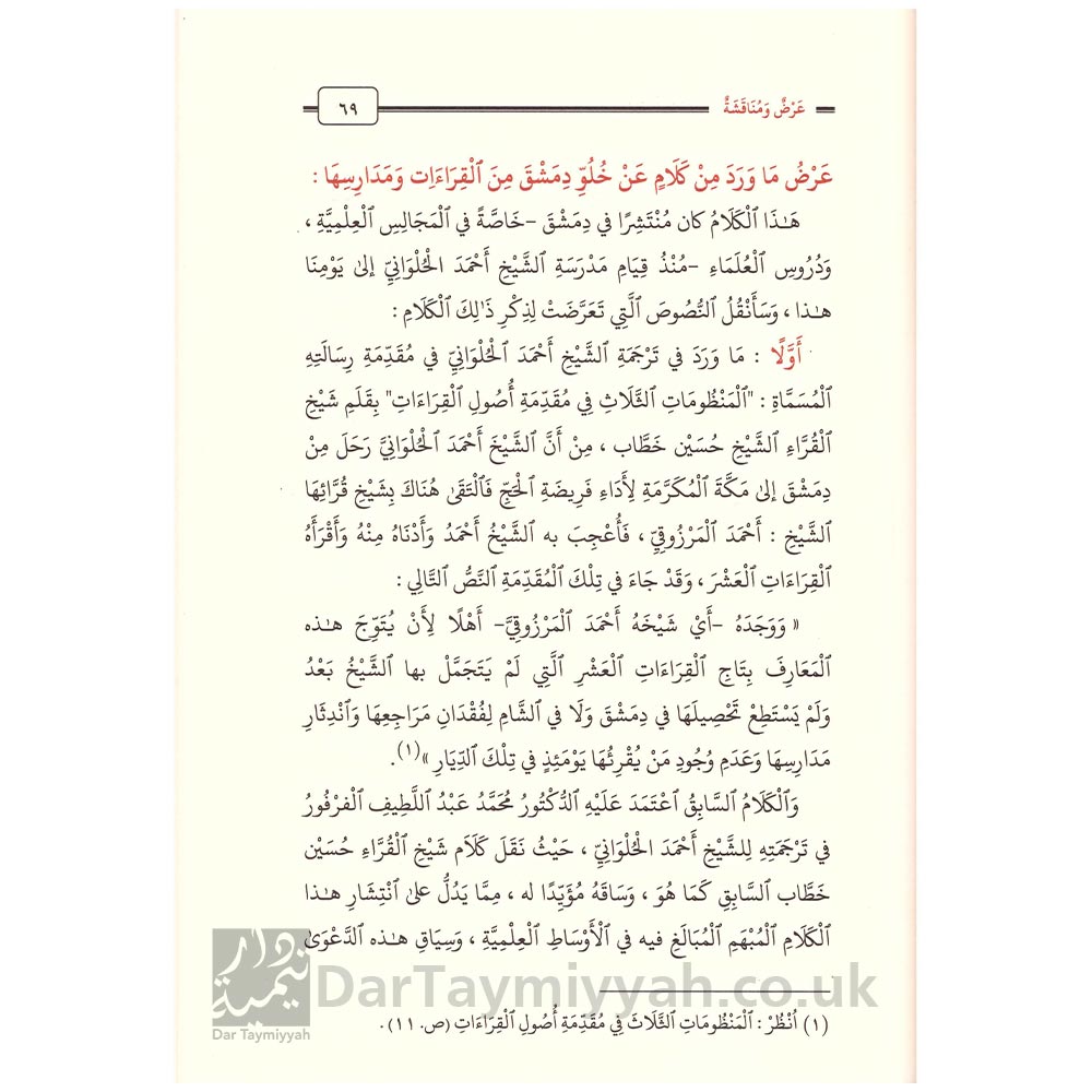 دَعاوى اِنقطاعِ القِراءاتِ في دمشقَ ظلَّتْ دِمشقُ مَوئلَ القرّاءِ، بَدءاً بمدرسةِ التّابعيِّ الجليلِ عبدِ الله بنِ عامرٍ الدِّمشقيِّ، المنبثِقةِ منْ مدرسةِ أبي الدَّرداءِ، ومروراً بمدارسِ شيوخِ القرّاءِ الكبارِ، ثمَّ انتهاءً بمدرسةِ الشيخِ أحمدَ الحُلوانيِّ الكبيرِ، فقدْ كانتْ كعبةً لطلّابِ العِلمِ منذُ الفتحِ الإسلاميِّ إلى اليومِ، ومعَ الضَّعفِ الذي اِعترى الأمَّةَ فقدْ بقيتْ شامخةً عصيَّةً على الصِّعابِ، هذا وقد نُقِلَ عنْ بعضِ المؤرِّخينَ طعنٌ صريحٌ في إسنادِ قراءةِ ابنِ عامرٍ الدمشقيِّ عنْ أحدٍ منَ الصَّحابةِ، وقدْ جاءَ هذا البحثُ ليردَّ تلكَ الطُّعونَ، وليدفعَ ما قيلَ في اِنقطاعِ واِندثارِ قرّاءِ القراءاتِ في دمشقَ، وذلكَ من خلالِ سَبرٍ لتاريخِ القراءاتِ، وهذهِ الدِّراسةُ في نتيجتِها دفاعٌ عنْ تاريخِ القراءاتِ في دمشقَ الشّام. هذا الكتاب للمؤلِّف الأستاذ: يحيى الفيفي.