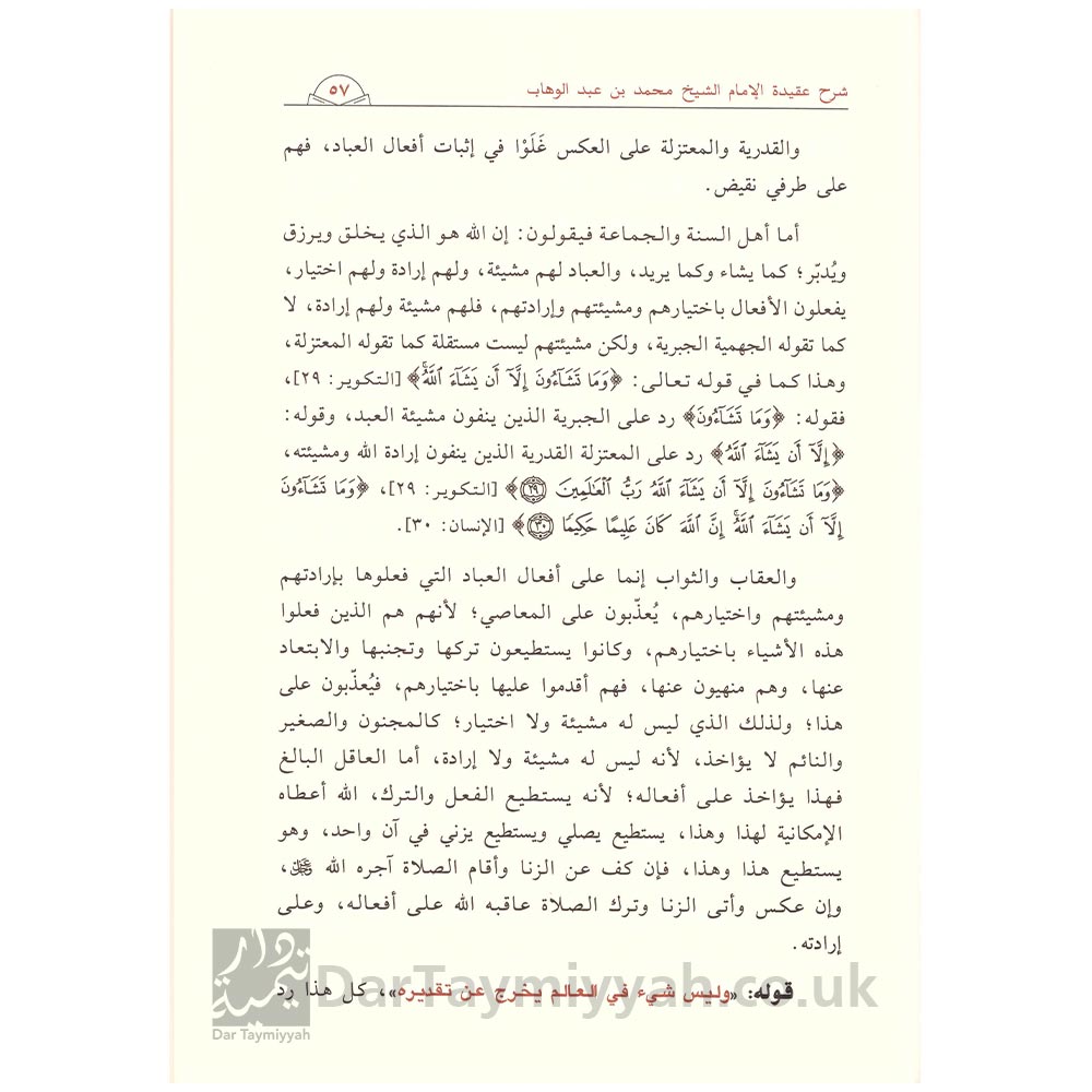 شرح عقيدة الإمام المجدد محمد بن عبد الوهاب أجزل الله له المثوبة والمغفرة – صالح بن فوزان الفوزان – مكتبة دار المنهاج – الرياض