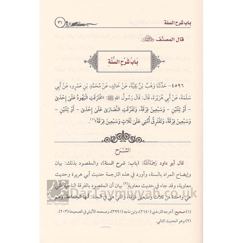 From the most well known of the books of the sunnah and that which has a tremendous station, is the book Sunan Abi Dawud. Shaykh Abdul-Muhsin Al-Abbad (may Allah preserve him) has explained the Kitab Al-Sunnah which is a chapter from Sunan Abi Dawud because of what it contains of narrations which the Imam collected regarding important affairs which the ummah is in need of.