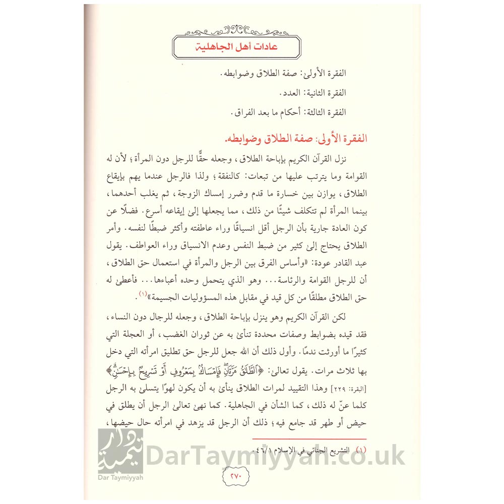 عاداتُ أهلِ الجاهلية يعالجُ هذا الكتابُ الكثيرَ من الصورِ الجاهليةِ التي استجدَّتْ في عصرِنا الحاضرِ، والتي لا تختلفُ في حقيقتِها عن الجاهليةِ القديمة، فهو بحثٌ جامعٌ لكلِّ العاداتِ التي كان أهلُ الجاهليةِ يُعَظِّمونَها كما وردتْ في القرآنِ الكريم مع دراستِها وبيانِ موقفِ القرآنِ الكريمِ منها، حيثُ إنَّ المتأمِّلَ في آياتِ القرآنِ ليَعجبُ من كثرةِ الآياتِ التي طرَحتْ مظاهرَ الجاهليةِ عندَ العربِ، وهذا يستدعي أن تحصرَ وتقسَّمَ وتنظَّمَ في رباطٍ جامعٍ يؤلِّفُ بينَها، حتى يُنتهى إلى صورةٍ واضحةٍ عن ذلكَ المجتمعِ، وبيانِ كيفَ عالجَ القرآنُ الكريمُ هذهِ المظاهرَ الجاهليةَ فيه. هذا الكتاب للمؤلِّف الدكتور: ناصر الماجد “رحمه الله”. .