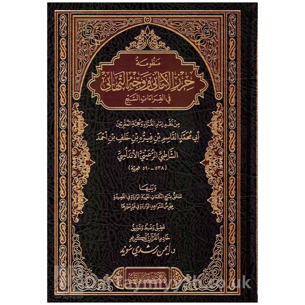 منظومةُ «حِرزُ الأماني ووجهُ التَّهاني في القراءات السَّبع» المعروفةُ بـ : « الشّاطبيّة » منْ نظمِ إمامِ القرّاءِ وحُجةِ المقرئينَ أبي محمدٍ القاسمِ الشّاطبي ، قُدِّمتْ لأهلِ القرآنِ محقَّقةً مصحَّحةً وَفْقَ قواعدَ إخراجِ النصوصِ التي اِرتضاها أئمَّتُنا، وقدْ رجعَ المحقِّقُ في تصحيحِ النصِّ إلى عدَّةِ نسخٍ خطيةٍ له، بالإضافةِ إلى عددٍ منْ شروحِ المنظومةِ المطبوعةِ والمخطوطةِ، كما تميَّزتِ النسخةُ الفنيةُ منْ المنظومةِ بمُلحَقينِ يخدُمانِ طالبَ العلمِ: ملحقٌ شرحَ فيهِ الغامضَ منْ كلماتِ المتنِ مرتَّباً على حروفِ الهجاءِ حسبَ المادةِ المُعجميةِ، وملحقٌ ذكرَ فيهِ الشواهدَ التي جاءتْ في غيرِ سوَرِها منَ