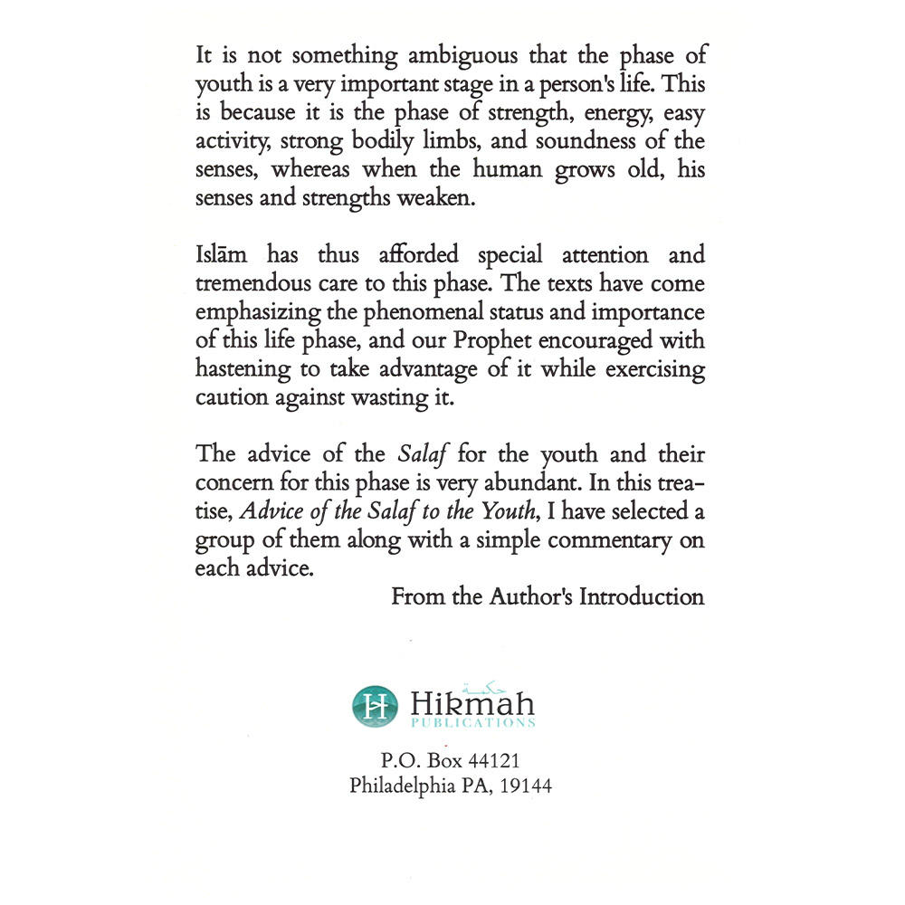The advice of the Salaf for the youth and their concern for this phase is very abundant. In this treatise, Advice of The Salaf To the Youth, the author has selected a group of them along with a simple commentary on each advice.