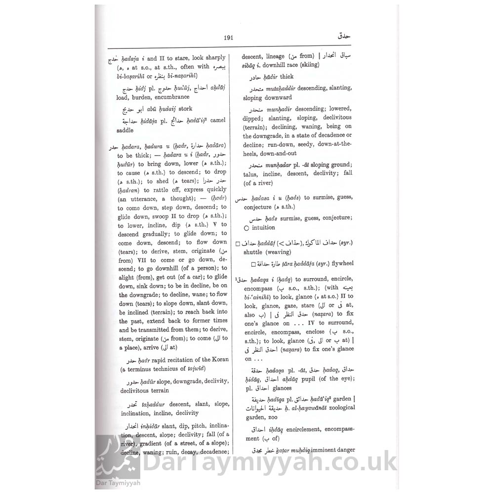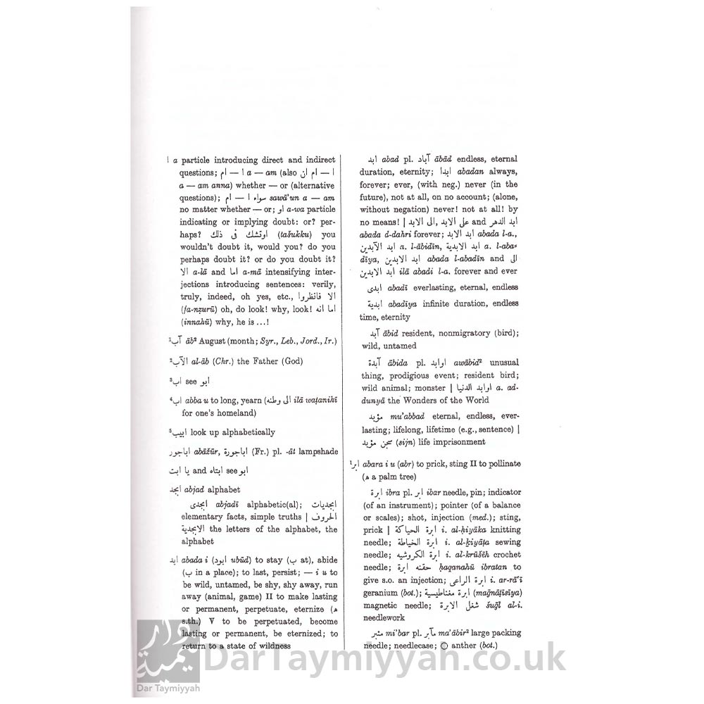 One of the Best and most Popular of all the dictionaries of modern written Arabic, the work is compiled on descriptive principles: only words and expressions that are attested in context are included “It was chiefly based on combing modern works of Arabic literature for lexical items, rather than culling them from medieval Arabic dictionaries, which was what Lane had done in the nineteenth century”
