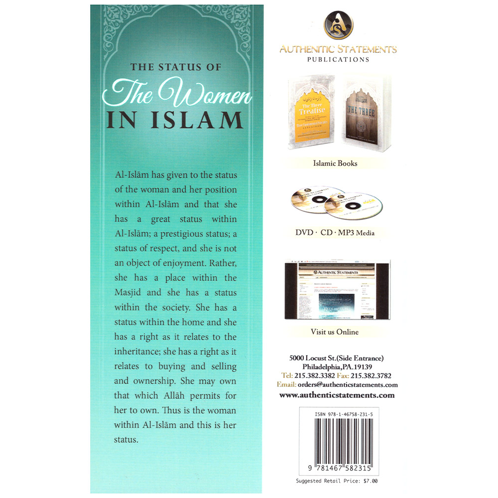 Islam has given to the status of the woman and her position within Al-Islam and that she has a great status within Al-Islam; a prestigious status; a status of respect, and she is not an object of enjoyment. Rather, she has a place within the masjid and she has a stautus within the society. She has a status within the home and she has a right as it relates to the inheritance; she has a right as it relates to buying and selling and ownership. She may own that which Allah permits her within Islam and this is her status.